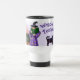 Niedliches Halloween Fantasiedesign der Anfängerhexe, die ihr Zauberbuch studiert. Sie hat einen Hexenhut und rodelt mit Symbolen. Neben ihr befindet sich der Zauberkessel. Im Text steht ... Hexe in Ausbildung.