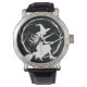 Uhr, Klassische Damenuhr mit schwarzen Lederarmband