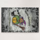 Hexe, Katze, Bat und Kürbis, glückliches Halloween Puzzle