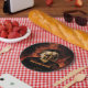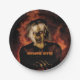 Hexe mit Kürbis gewischt. Halloween Pappteller