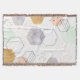 Hexe-Streuung I durch Gabrielle McClure. Hexagone der verschiedenen Formen und der Entwürfe zerstreuten über einen weißen Hintergrund.