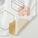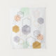 Hexe-Streuung I durch Gabrielle McClure. Hexagone der verschiedenen Formen und der Entwürfe zerstreuten über einen weißen Hintergrund.
