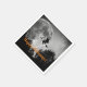Fun Halloween Party-Servietten sind mit Schwarzweißfoto von Vollmond mit fliegender Hexe-Silhouette und benutzerdefinierbarem Textüberlagerungen versehen
