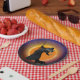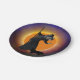Hexe und schwarze Katze mit Orange Moon Pappteller