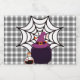 Ein Halloween-Weinetikett mit Kessel, Web und Hexen