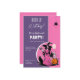 Drink up Hexen Halloween-Party Template Einladung Sofortdownload, groovy Retro mit gedämpften Farben rosa und lila eine Hexe mit einer Tasse, Brautopf und eine Katze