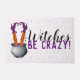 Super entzückende Hexe themenorientierter Halloween-Entwurf. Entwurf umfaßt einen Hexegroßen kessel, der mit einem lila Hexen Brew gefüllt wird. Es gibt einen Hexekopf zuerst im Gebräu mit gerade ihren Beinen und Füßen, die oben aus dem Gebräu heraus haften. Die Hexe trägt orange Strümpfe mit schwarzen Polkapunkten und lila Hexestiefeln. Auf der rechten Seite der verrückten Hexe und ihres großen Kessels ist Text in Schwarzem und lila Schriftart, der Hexen sagt, ist verrückt! Dieser themenorientierte Entwurf der lustigen Hexe ist der perfekte Zusatz zu Ihrem Ausgangsherbst- und Halloween-Dekor!