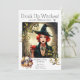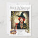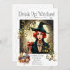 Die Einladung enthält eine faszinierende Abbildung einer Hexe, die in einem klassischen Hexenhut verziert ist und Wein aus einem Glas schlängelt. Sie steht vor einem Hintergrund eines faszinierenden Vollmonds und strahlt ein zauberhaftes Glühen aus. Das Mondlicht strahlt die Szene in einem unheimlichen, aber einladenden Ambiente aus und setzt den Ton für einen magischen Abend der Freude.