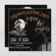 Niedliche Hexe in einem großen Hut mit ihrer schwarzen Katze auf einem Besen vor einem Erntemond. An der Vorderseite der Karte befinden sich auch zwei niedliche Grabstein rechts unten und ein mystischer Baum, der sich im Hintergrund versteckt. Dieses Hexen und Hexenmeister Halloween Party lädt sicher zu überraschen und Ihre Gäste zu erfreuen. Die Rückseite dieser Karte hat die niedliche Hexe im großen Hut mit ihrer schwarzen Katze auf einer Besen-Abbildung zentriert. Schwarzer Hintergrund mit grauen Sphären. Party laden Informationen wie Monat, Datum, Wochentag und Anschrift, Party Zeit und UAWG Informationen sind vollständig anpassbar.