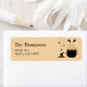 Desteis Halloween-Illustration von orangen und weiß gestreiften Hexenbeinen, die aus einem schwarzen Kessel mit grüner Hexenbraue klemmen. Neben dem Kessel hängt ein Hexenhut und einige Spinnen. Es gibt auch zwei personalisierbare Textbereiche.