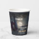 Halloween-Papier-Tasse mit einem Bild von dunkler Nachtlandschaft mit Vollmond, einer bösen Katze und Spinne sowie einer Fledermaus. Ideal für Sie mit Brauerei!