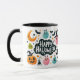 Mit diesem schönen "Happy Halloween"-Design bringen Sie Ihrem Halloween ein Stück Kultur! Mit einer flauschig rosa Kreatur, die als Hexe verkleidet ist, mit einem Hut mit Blume und einem winzigen Besenstiel, bezaubert dieses Design mit Charme. Die Szene ist voll von spielerischen Jack-o-Laternen, einem lächelnden Mond, freundlichen Fledermäusen und einem niedlichen blauen Sidekick für extra spoky Spaß. Dieses skurrile und lebendige Design eignet sich perfekt für die Gestaltung von Halloween, Party Einladungen oder festlichen Kleidern und bringt allen ein Lächeln und zauberhafte Halloween-Gemälde.