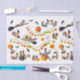 Eine Hütte Eichhörnchenwitscher bringt Kürbisse und Jack-o-Laternen auf diesem farbenfrohen Halloween-Papier.