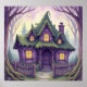 Dieses skurrile Poster besticht durch ein Fantasy-Hexenhaus inmitten des Magick-Waldes. In einem Aquarelldruck fertig gestellt.