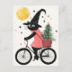 Hexenkatze Radfahren mit Weihnachtsbaum Quirky Wei Postkarte