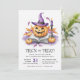 Feiern Sie Halloween mit einer bezaubernden Party Einladung, die einen Hexenhut, Kürbiskugel und spukhafte Elemente in Aquarellfarbe aufweist. Diese individuell gestaltbare Einladung eignet sich hervorragend, um den Ton für eine lustige und festliche Halloween-Ansammlung zu setzen.