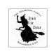 Personalisierte Briefmarke aus Gummi. Vector Illustration mit grunge Silhouette von Hexenfliegen auf einem Besen. Text "Trick or Treat". Fügen Sie Ihren Text hinzu.