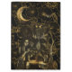 Schauen Sie sich diese gotische Hexe- und Hexenkomposition an - goldene Elemente auf schwarzem Hintergrund mit Lotus-Blume.