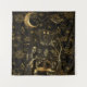 Schauen Sie sich diese gotische Hexe- und Hexenkomposition an - goldene Elemente auf schwarzem Hintergrund mit Lotus-Blume.