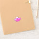 Lila Mottenaufkleber in lila und rosa mit zauberhafter Hexenmotte in der Nacht mit Halbmond und Sternen darüber auf dunklem Hintergrund.
