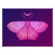 Hexes Mottenposter in lila und rosa mit zauberhaftem Hexenmuster einer gelben Motte in der Nacht mit Halbmond und Sternen darüber auf dunklem lila Hintergrund.