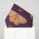 Zauberhaftes Mottenpapier in lila und gelb mit zauberhafter, zauberhafter Abbildung einer gelben Motte in der Nacht mit Halbmond und Sternen darüber auf dunklem lila Hintergrund.