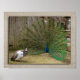 Ein männlicher Pfau streift seine Sachen, um seine weibliche Gegenspielerin anzuziehen.