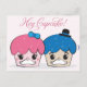 Lustige Postkarte von zwei Kuchen mit Schnurrbart. Auf der Postkarte steht: "Hey Cupcake!"