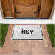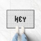 Dieses klassische Schwarz-Weiß-Imitat hex Fliesen Design Doormat liest "HEY". So eine lustige Ergänzung zu jeder Haustür!