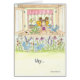 Ein junges Mädchen mit Schwänzen sieht aus dem Fenster und fragt sich, ob ihre Freundin jemals schreiben wird. Ein kleiner grüner Frosch und blaue Vögel sitzen neben ihr.