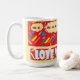 HI Karen Love You with bright red and patterned Kaffeetasse