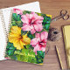 Tropical hibiscus and leaves weekly planner. Personalize this pretty, spiral bound book with a name on the front, or other text. Use one or two lines. Pink and yellow hibiscus flowers, along with big green jungle leaves, cover the front and back of planners in two size, 5x8 or 8x11. Makes a nice gift for a bride planning a wedding, or bridesmaids as thank-you gifts.