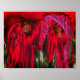 Kühne tiefe rote Farben Hibiskus Blume Fantasie abstrakte Design Blumenposter Druck. Design von Susan.