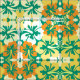 Muster der Hibiskus-Blume in einem Muster / Hintergrund in Emerald, Zitronensorbet, Elfenbeinweiß und Orange Farben.