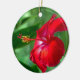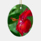 In diesem atemberaubenden Bild wird eine Blume des roten Hibiskus vor einem grün motbelten Hintergrund hervorgehoben.
