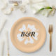 Hibiskus Blume Logo personalisiert tropische Hochzeitszeitung Teller. Anpassbare Vorlage mit Anfangsbuchstaben des individuellen Namens. Die Farbe des Logos kann geändert werden. Ideal für tropische Hochzeit in Urlaubsort Party und mehr.