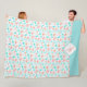 Ein hübsches aquamarines und rosa Flamingo- und Hibiskus-Blumenmuster ist der Hintergrund für diese attraktive Fleecedecke. Die Spitze der Decke hat eine zusammenpassende aquamarine Grenze. Die Grenze und das Muster zu teilen ist eine verzierte weiße Fahne mit einem Bild eines Singlerosaflamingos. Hübsche Pastellfarben für irgendein Zuhause!