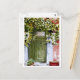 An old, weathered green door nearly hidden behind the colorful vine growing on the side of the house. The peeling red plaster on the wall adds a nice contrast the the green of the vine. A reproduction of an original watercolor painting.