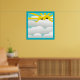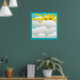 GELBE SONNENGESICHT HINTER WEISSEN FLÜCHTLINGSKLIEBEN