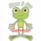 Hier bin ich niedlicher grüner Frosch, personalisieren Sie, indem Sie Ihren Namen in einer beliebigen Hintergrundfarbe