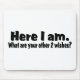 Hier bin ich, was Ihre anderen zwei Wünsche sind