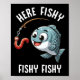 Hier Fishy Fishing Funny Worm Niedlich Fish Fisher Poster