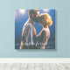 Elegante, frisch verheiratete Leinwand mit dem Zitat "Hier ist für immer" in einem wunderschönen Schriftart für Schrift-Kalligraphie, einem benutzerdefinierten Foto, Mr. und Mrs. und ihrem Nachnamen, und einer überlagerten halbinopaken Schicht, um ihr einen einzigartigen und dainty Look zu geben. Um diese Ebene zu entfernen, klicken Sie bitte auf die Schaltfläche, um das Design zu bearbeiten. Um das Bild zu zentrieren, klicken Sie auf "Zuschneiden".