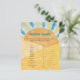 Einzigartige Watercolor Sunshine Babydusche Baby Guess Game Card in den Farben Gelb, Blau und Burnt Orange.