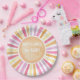 Hier kommt das Sonnenmädchen, das die Sonne duscht Pappteller