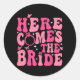 Hier kommt der Junggeselinnen-Abschied von Bride P Runder Aufkleber