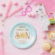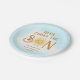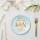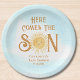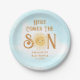 Die Babydusche-Papier-Teller des niedlichen Jungen sind mit dem Text "Here Comes The Son" in stilvoller Typografie mit einer gelben Aquarellsonne und blauem Himmel versehen. Einfach anpassbar. Weil wir unsere Kunstwerke erstellen, werden Sie dieses exakte Bild von anderen Designern nicht finden. Original Wasserfarbe © Michele Davies.