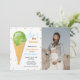 Niedliches Eis Thema Babydusche Einladungskarte mit Aquarellkunstwerk aus rosa Eis. "Hier ist die Kugel! Ideal für eine Dusche eines Sommerjungen