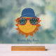 Feiern Sie Mütter zu sein mit einem lustigen Baby Junge Hier kommt die Sonnendusche. Dieses Schild zeigt einen Cartoon mit Sonnenbrille und einem Eimerhut in Gelb, Orange, Rot und Blau. Das Zeichen ist bereit, mit Ihrem benutzerdefinierten Text unter der Grafik angepasst zu werden.