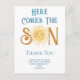 Hier kommt die Son Baby Dusche Danke Postkarte